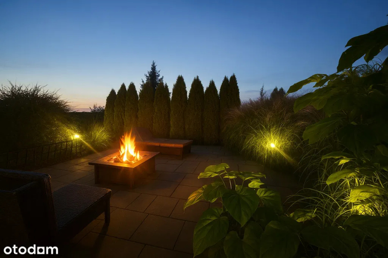 strefa dla dzieci – bezpieczne miejsce do zabawy strefa z ogniskiem – idealna na wieczorne spotkania altana z grillem – miejsce spotkań i wspólnych posiłków przestrzeń wypoczynkowa przygotowana pod jacuzzi strefa techniczna z domkiem narzędziowym